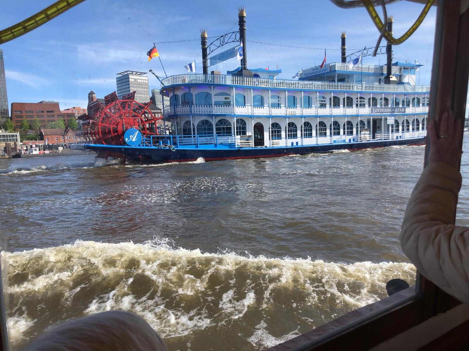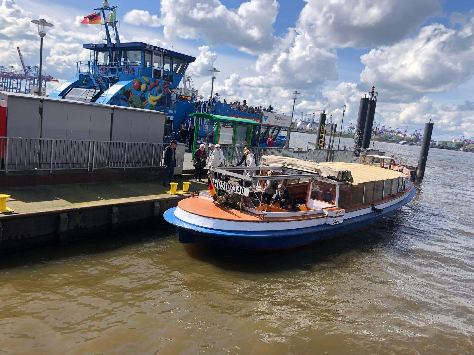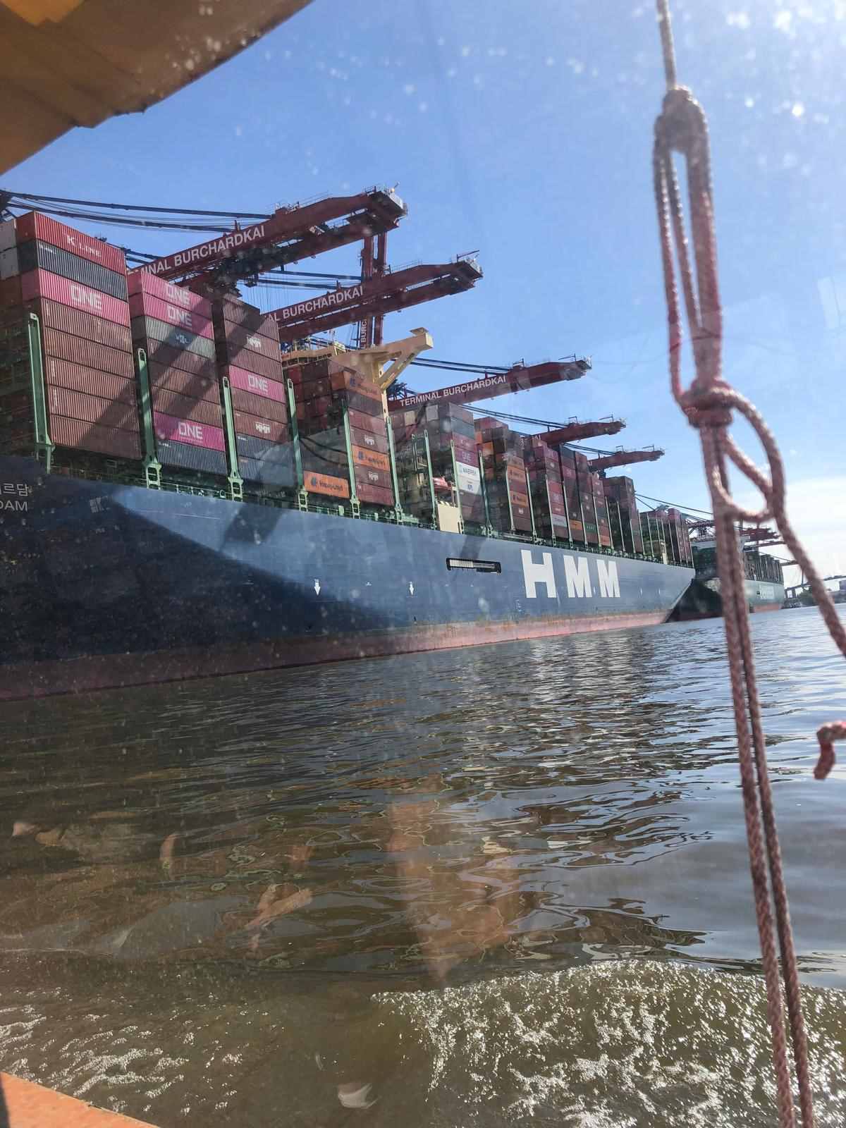 Strahlende Sonne, Gute Laune, Falsche Klamotten… (zu warm). Es war einfach eine Supertour. Mit einer Barkasse, der Reederei Glitscher , die sich ab und an mal schüttelte, ging es um 10:00 Uhr ab den Landungsbrücken durch Fleete und Schleusen. Auf der Elbe schipperte man an großen, neuen und alten Pötten (Cap San Diego, Rickmer Rickmers ), Werften, Burchardkai, Marineschiffen vorbei. 100 Minuten nur Staunen.