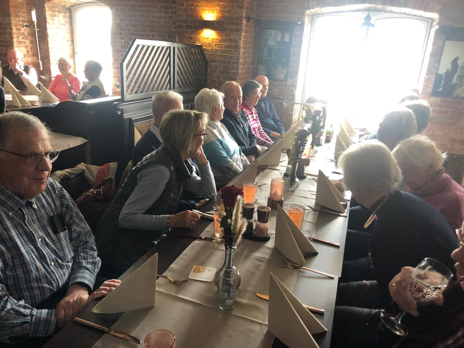 “ Zum Elbspeicher“ wo bei einem sehr guten Service das genau so supergute, vorbestellte Essen eingenommen wurde. Es klappte alles wie am Schnürchen. Mit dem Bus ging es danach zum Schokomuseum (Schokoversum). In 2 Gruppen eingeteilt, erfuhr man alles über die Fertigung von Schokoladenprodukten. Betont wurde der nachhaltige Anbau bei reellen Arbeitsbedingungen ( Fair Trade ), von der Ernte der Kakaobohnen bis zum fertigen, süßen Schokotraum. Bei allen Stationen im Haus konnte probiert werden. Mit der Rohschokolade durften sich die Teilnehmer eine eigene Variante „erarbeiten“, garnieren und dekorieren. Hierbei wurde mit Wärme und Kühlung alles in Form gebracht. Im Shop konnte man , wer wollte, die Produkte (viel von Lindt) erwerben. Ein besonderer Dank gilt den Museumsführerinnen, die es verstanden haben , die Zuhörerschar zu faszinieren.