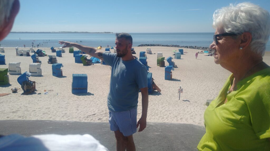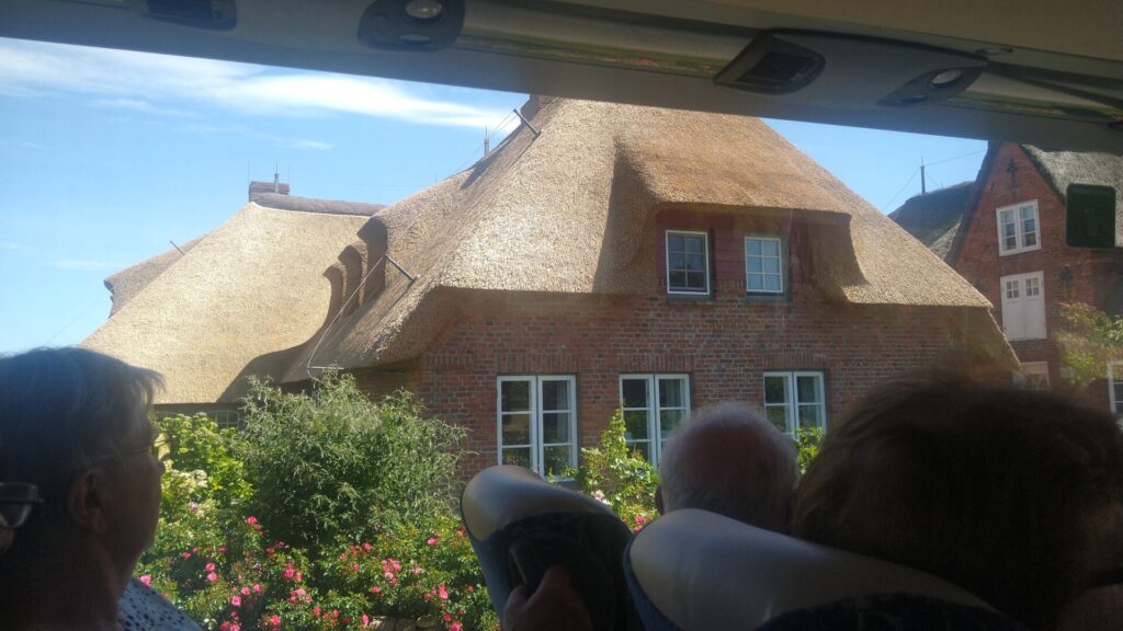 Sonne pur, 30° im Schatten, eine illustre und fröhlich gestimmte Reisegruppe von Ehemaligen der Post und Telekom Heide, sowie weitere Gäste erlebten einen wunderschönen Tag auf der Insel Föhr im Naturpark des Nordfriesischen Wattenmeeres. Nach einem guten Mittagessen im „La Rocca“ konnten wir in Wyk flanieren, bummeln, shoppen. Wyk präsentiert eine wunderschöne Promenade und ein tolles Stadtbild. Am Nachmittag wurden wir im Rahmen einer Inselrundfahrt mit Informationen und Ansichten schönster Dörfer, Strände, Weingärten und vieles mehr , überflutet. Der freundliche Busfahrer gab alles, um uns bei der Hitze bei guter Laune zu halten. Es war rundum ein superschöner Ausflug. Viel Spaß beim Bilder anschauen.